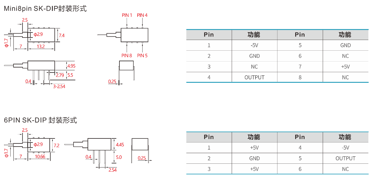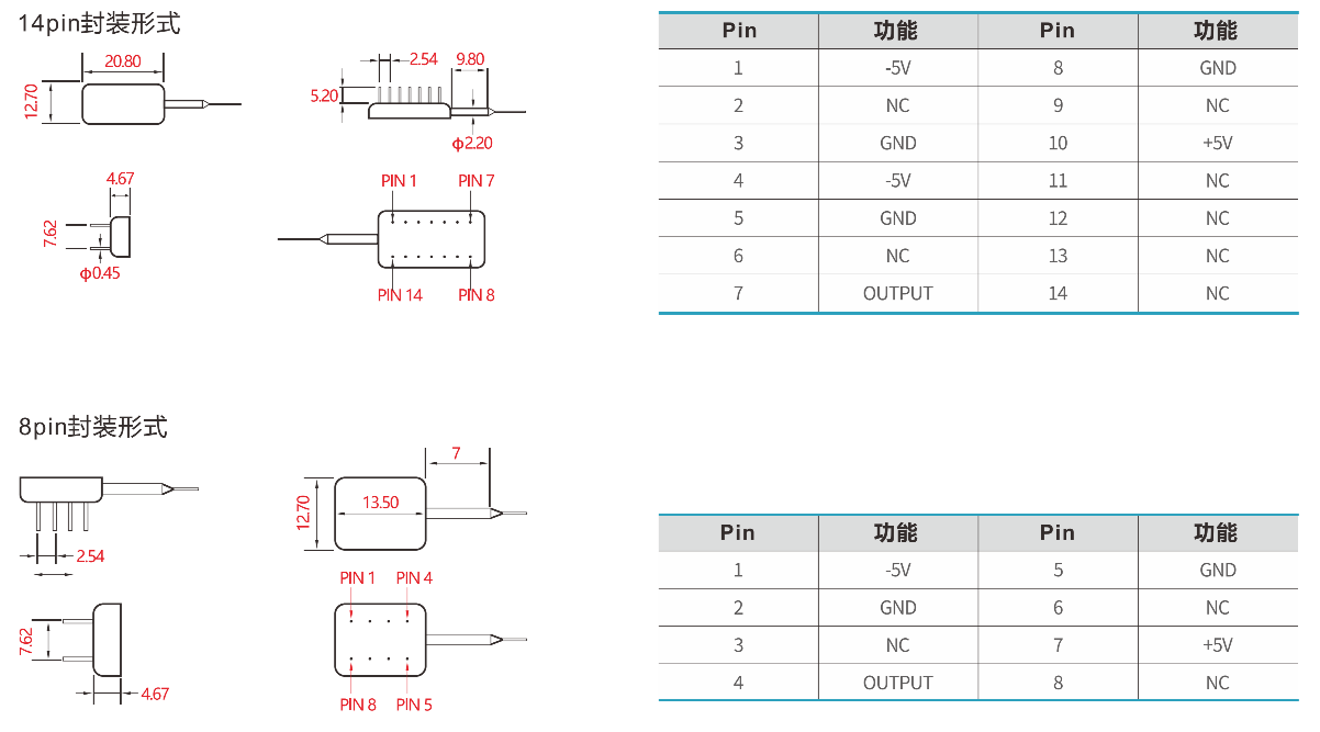 各种型号及参数(参数值为典型值)测试条件:+25°℃(+/-5.0V直流)