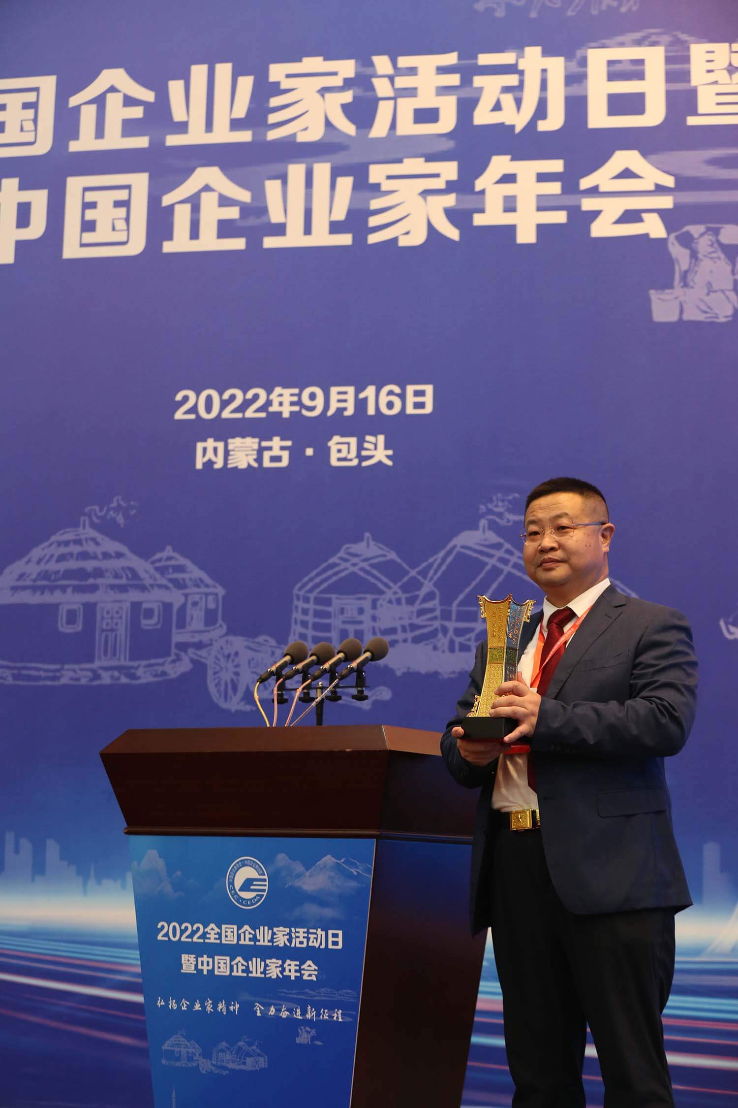 2022年9月16日,全国企业家活动日暨中国企业家年会在内蒙古自治区包头市隆重举行。本次大会以“弘扬企业家精神,全力奋进新征程”为主题,共商发展大计。大会颁发了第十二届“袁宝华企业管理金奖”,表彰了2021—2022年度全国优秀企业家,公司董事长兼总裁皮亚斌先生名列其中。
